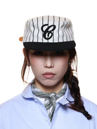 6CRAYON Retro Flat Top Baseball Cap - Striped Wool Blend with Embroidered Letters