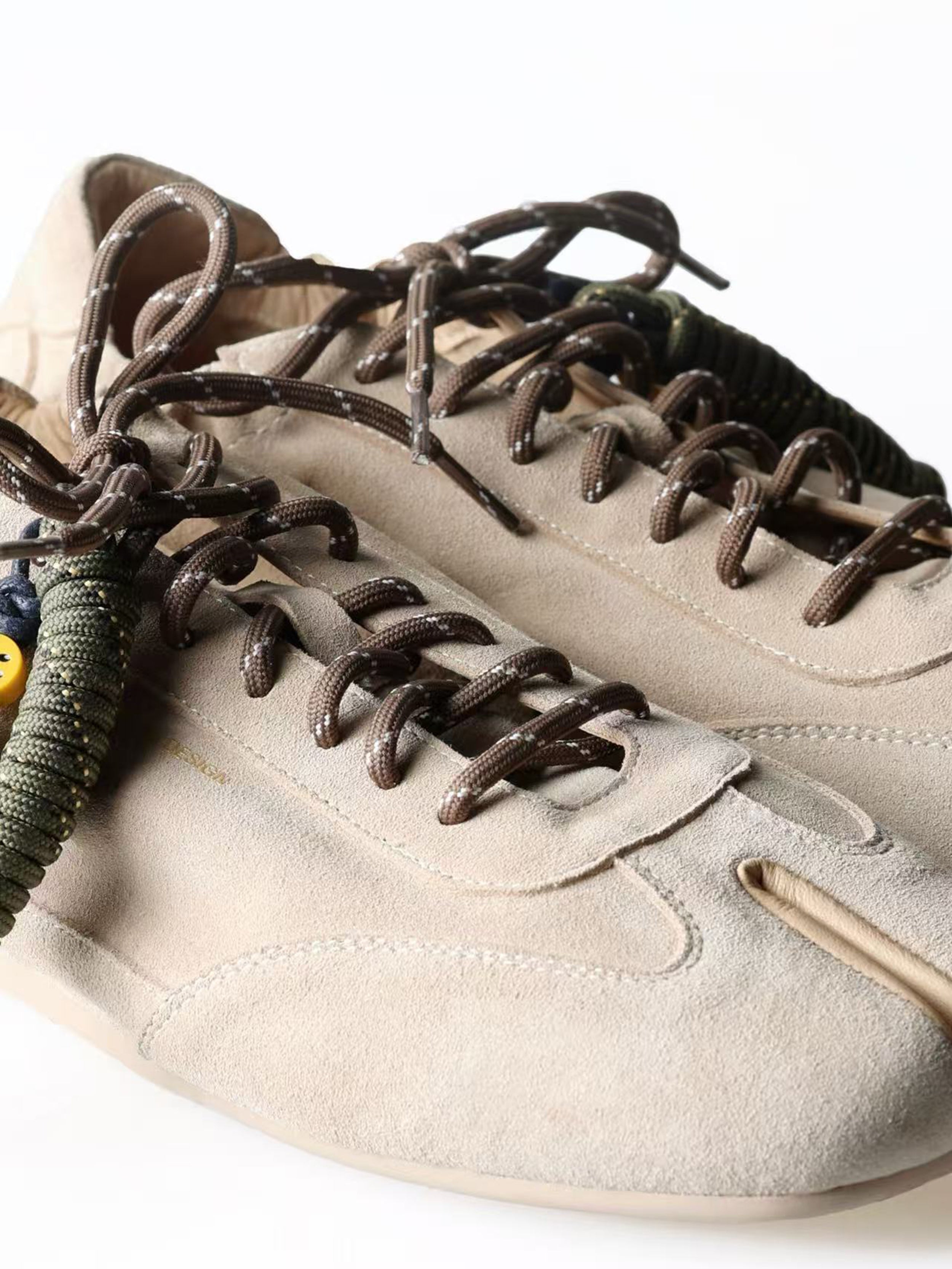 6CRAYON Thin-Sole Tabi Sneakers | Khaki Suede Cowhide Version